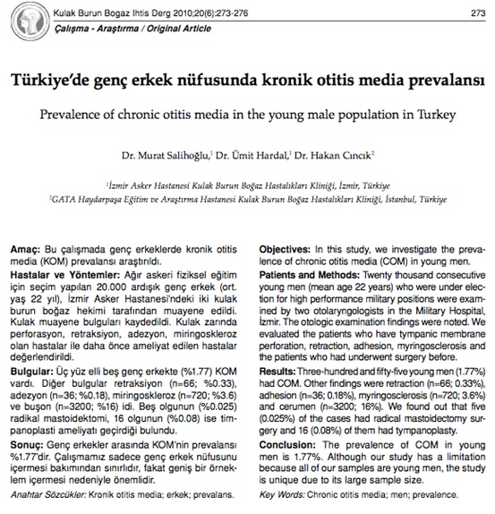 Ülkemizde kronik kulak hastalıklarının sıklığı üzerine yaptığım araştırma özeti aşağıdadır;