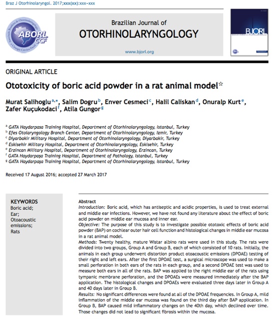 Akıntılı kulak hastalıklarında kullanılan borik asit tozunun güvenilirliğini araştırdığım bilimsel çalışmamızın özeti aşağıdadır;